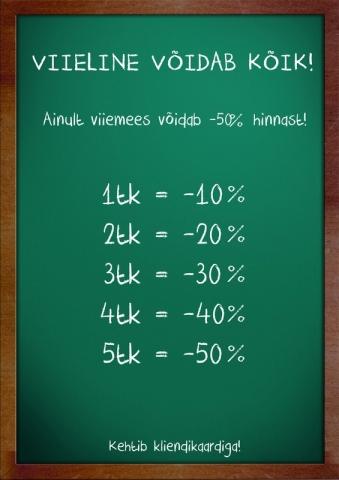 Tule ja osta kuni viis riideeset ja saad kõigi riiete pealt -50% soodustust.