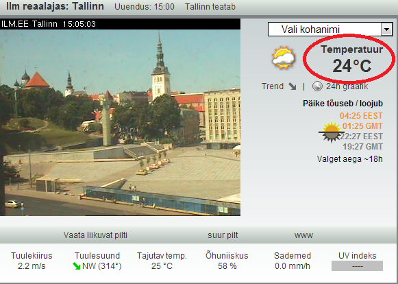 Ilm.ee andmetel hetkel Tallinnas 21 soojakraadi, seega -21%