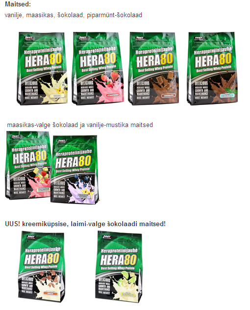 mango-apelsini, kookos-ananass, õun-jõhvikas, maasikas, kiivi-maasikas, vaarikas-mustikas.Ostes 100€ või enama eest, kaasa TASUTA populaarseim vadakuvalk Hera80 – sobib nii naistele kui ka meestele.