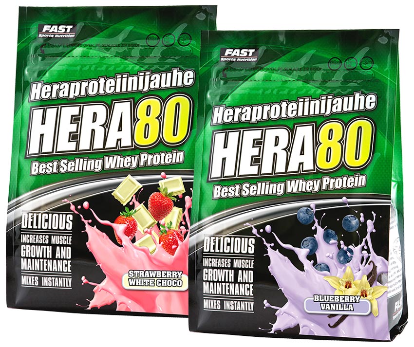 HERA80 on kvaliteetne kergelt imenduv vadakuvalgu pulber kõikidele sportlastele ja atleetidele. Uuringud näitavad, et vadakuvalk kiirendab taastumist rasketest treeningutest nagu näiteks on jõutreeningud või kontaktspordialad. Hera80 sisaldab lihaste kasvuks ja taastumiseks vajalikke aminohappeid ja glutamiini. Tänu moodsale ultrafiltreerimistehnikale on Hera80-es säilinud aktiivses olekus ka funktsionaalsed mikrofraktsioonid. Üks Fitshop.ee populaarsemaid tooteid!
