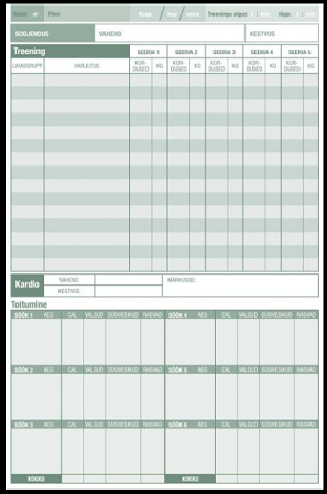 Seest näeb välja selline, ruumi nii treeningu kui ka toitumise kirja panemiseks.