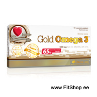 GOLD OMEGA3 Omega-3 rasvhapete pehmed kapslid, toidulisand. Kõrge kvaliteediga külmade merevete kalaõli, sisaldab rikkalikult 65% ulatuses EPAd ja DHAd.