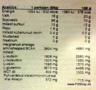 - Lisatud vitamiinid-mineraalid, MCT rasvhapped, L-glutamiin ja L-tauriin!