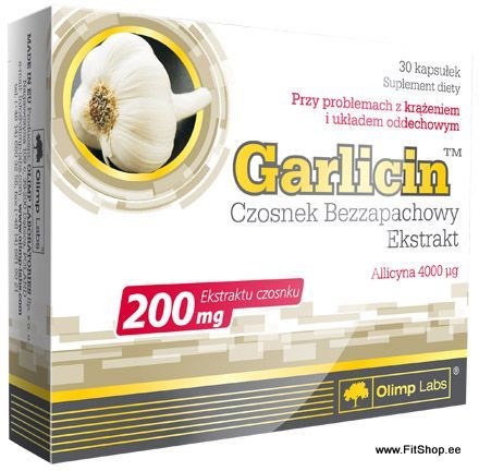 Olimp toidulisand GARLICIN – sisaldab kõrge konsentratsiooniga lõhnatut küüslauguekstrakti, sisaldades küüslaugu kõige tähtsamat komponenti – allitsiini. Toode aitab hoida südantm verevarustust ja immuunsüsteemi heas seisukorras.