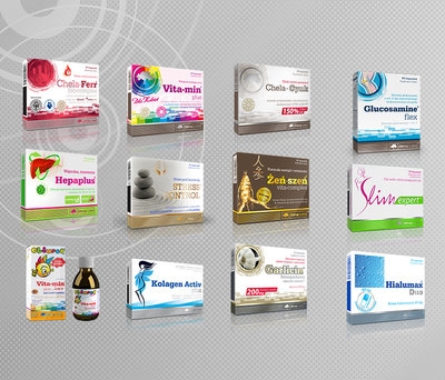 Olimpi toodetest on saadaval: Glycosamine flex, Chela-Ferr bio-complex, Vita-min plus, Hepaplus, Slim expert, beta-Solar, Vita-min junior, Garlicin, Hialumix, Stress control, Kolagen active ning Ginseng.