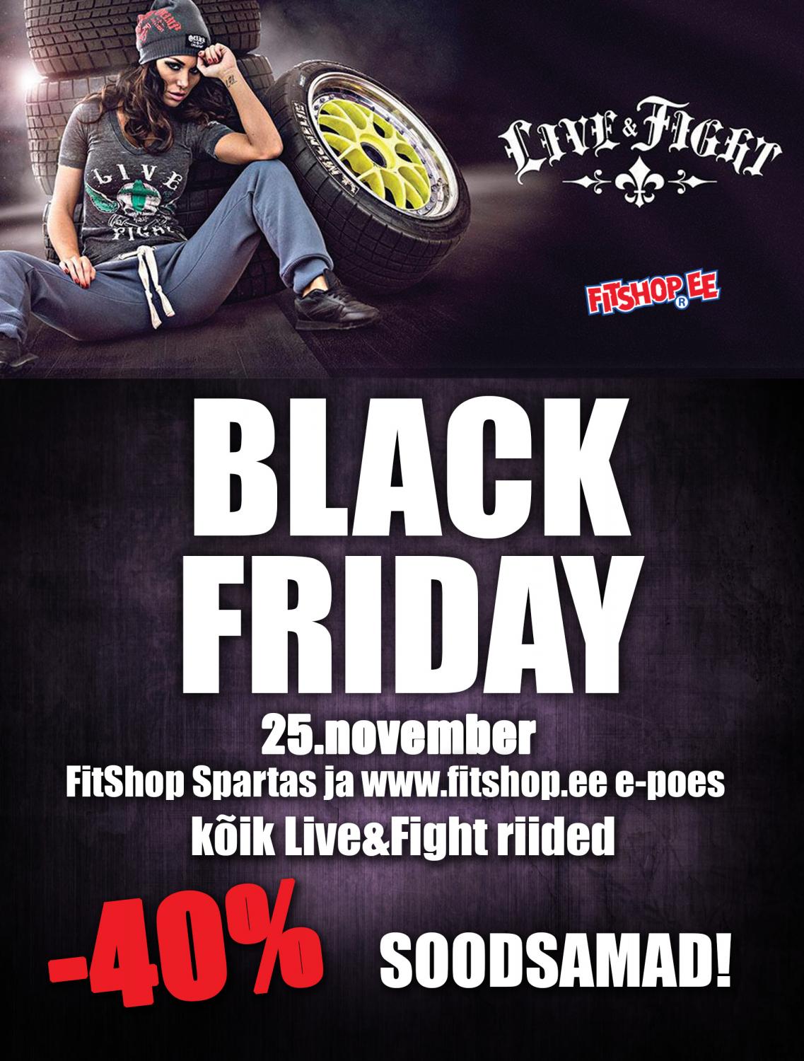 MemberKäest ta ongi – kauaoodatud supersoodustustega BLACK FRIDAY! Fitshop Spartas ning veebipoes on kogu Live&Fight meeste kui ka naiste riided -40% soodsama hinnaga!