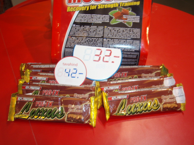 Mida ma Teile siis pakun? Peale meeldiva seltskonna ja igakülgse abi paksust toidulisanditemetsast läbimurdmisel on hetkel veel saadaval mõned soodushinnaga Pro Fx Luxus batoonid. Endine hind 42.-, UUS HIND 32.- !!!
