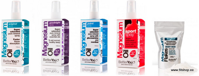 Selles sarjas on 4 erinevat Spray Magneesiumi, mida saab pihustada otse sinna, kus teda kõige rohkem vaja on: