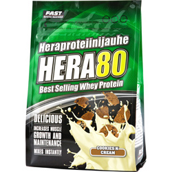 HERA80 on kvaliteetset piima vadakuvalku sisaldav valgupulber sportlastele, tervisesportlastele ning oma tervisest hoolivatele inimestele. Valk soodustab lihasmassi kasvu ja selle säilimist. HERA80 sisaldab ka rikkalikult kaltsiumi, mis toetab lihaste toimimist ning koos valguga aitab säilitada luustiku tugevana. Maitsev Hera80 lahustub kergesti kõigis vedelikes. Oma menüü valgusisalduse suurendamiseks võid seda segada ka pudru või jogurti sisse.