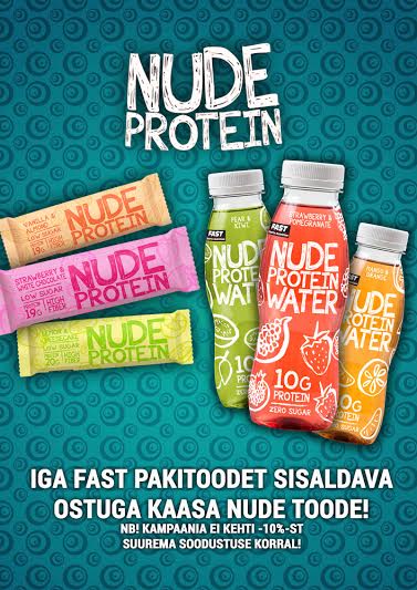 Ostes nüüd ühe Fast’i pakitoote, saad kingituseks kaasa ühe meie uutest toodetest, kas NUDE Protein Bar’i või hoopis NUDE Protein water’i!