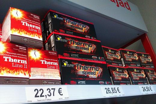 Riiulid on kaupa täis, eriti Olimpi tooteid.