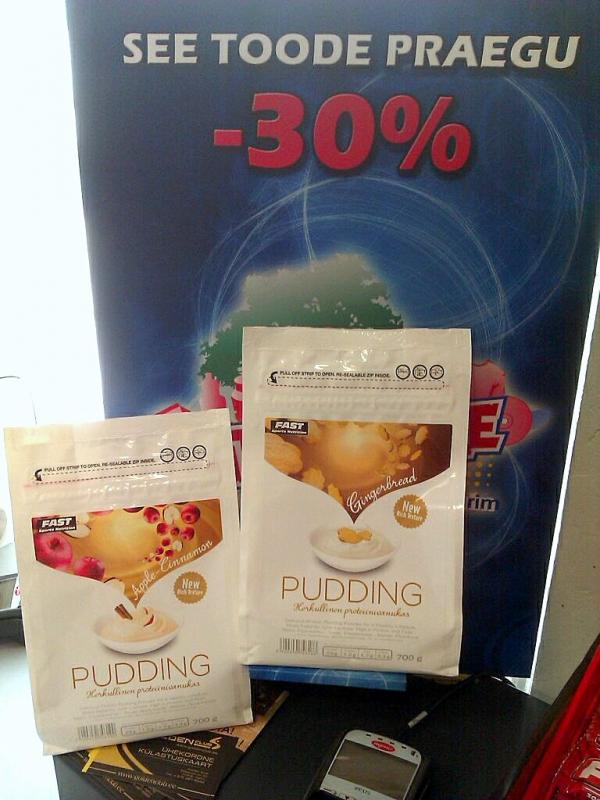 30g puddingis, 24g valku ja 0,5g süsivesikut.