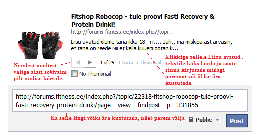 3) Palun kasutada kirjasuuruseid maitsekalt, st ei pea kõike teksti panema suures rasvases kirjas. Oluline osa teha paksus kirjas ja pealkirjad, tähtsamad hüüdlaused suuremalt. Tootekirjeldust ei maksa panna suure kirjaga, samuti ei ole vaja kopeerida kogu FitShopi teksti postitusse, sest oluline on klient suunata FitShop.ee keskkonda, kus ta saab infot nii selle konkreetse toote kui ka teiste toodete kohta, mida osta.
