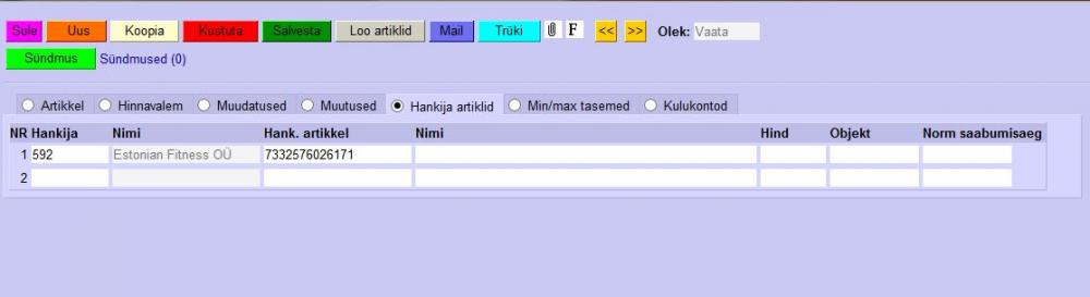 Hankija artikkel, seal palun uuendage alati ribakoodi. Kui kopeeriti artiklit, siis sinna jääb vana ribakood, see on vaja üle teha.