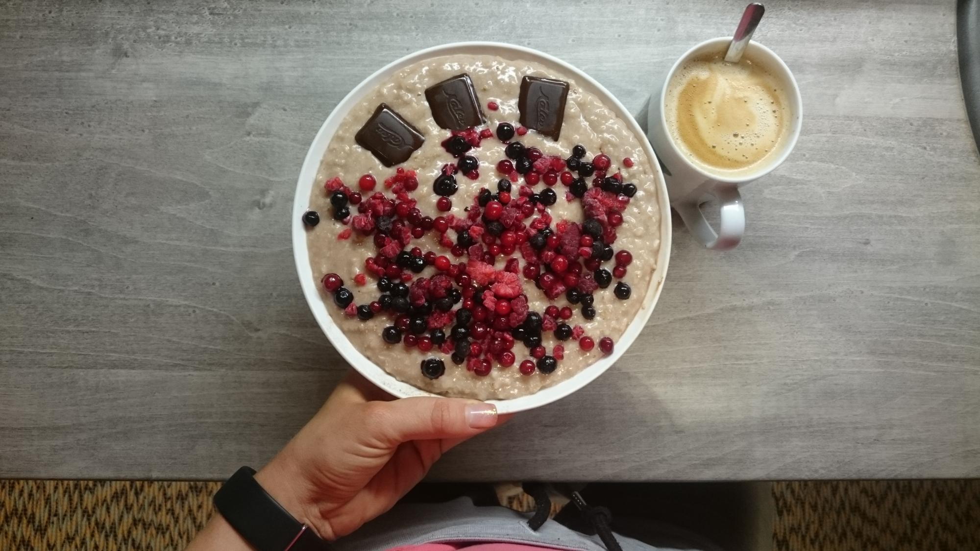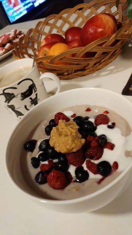 MemberTäistera kaerahelbe puder. 70% tume shokolaad, hera80, munavalge. Marjad (pohl, mustikas, vaarikas). Puder keemise ajal läbi vispeldatud, nii eriti kohev tulemus