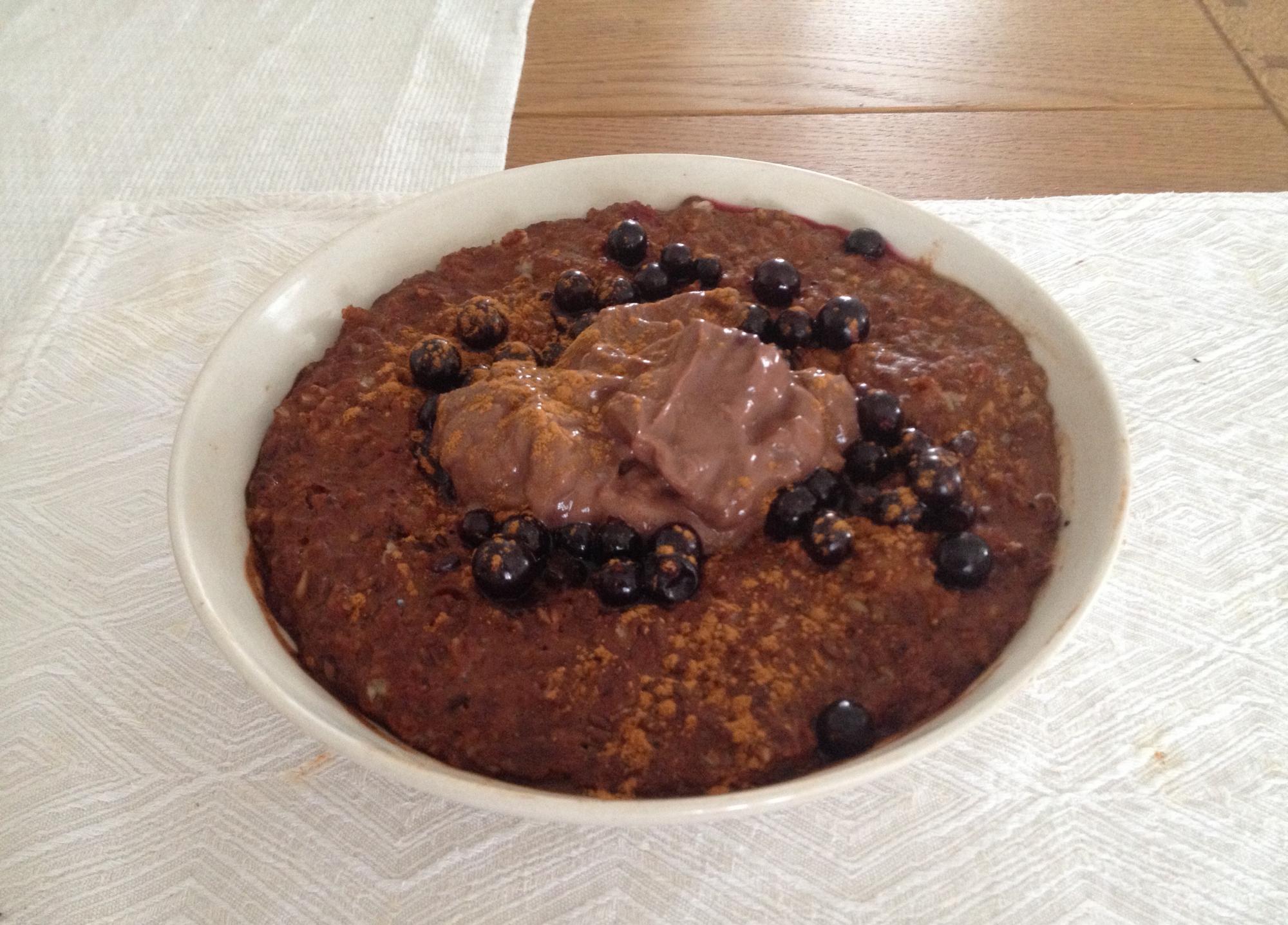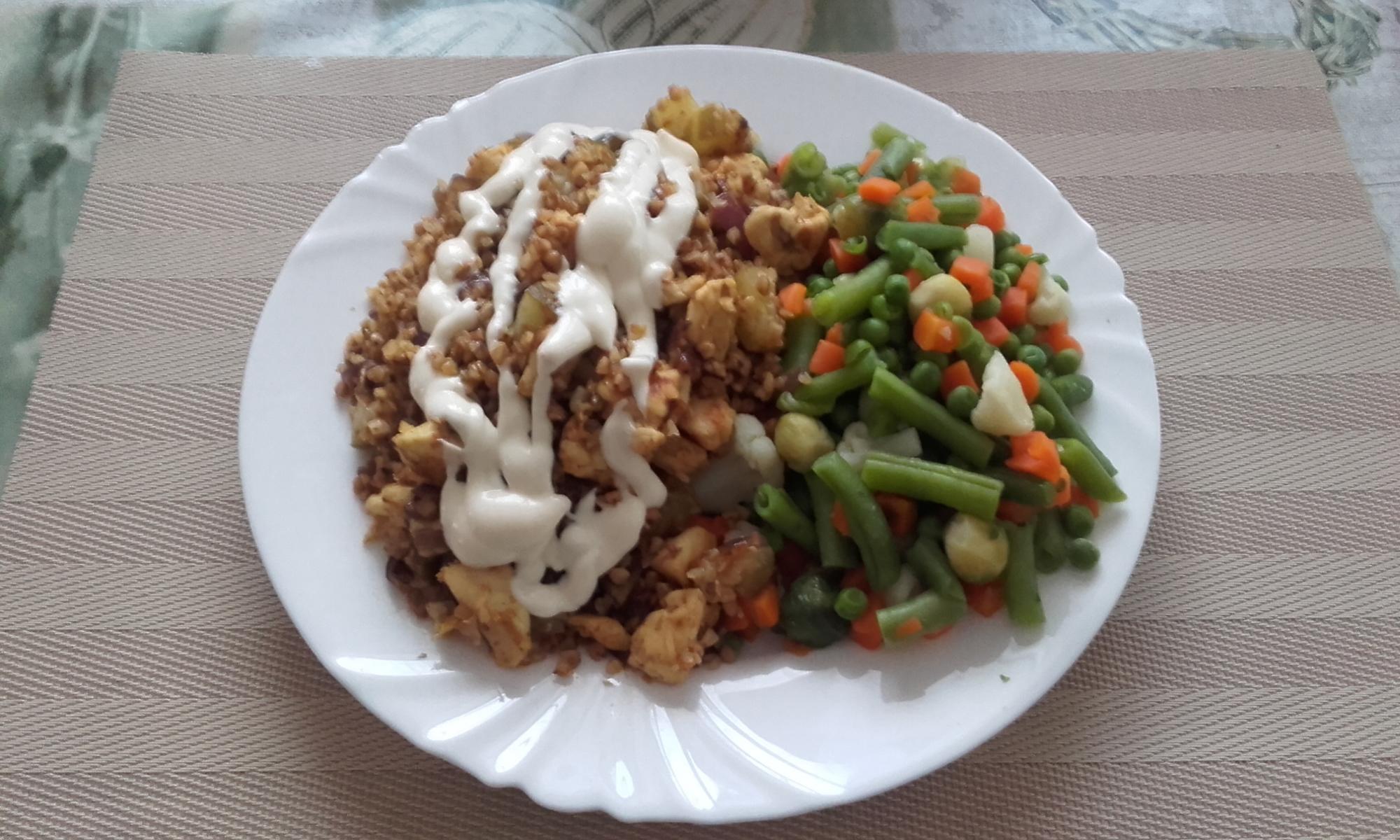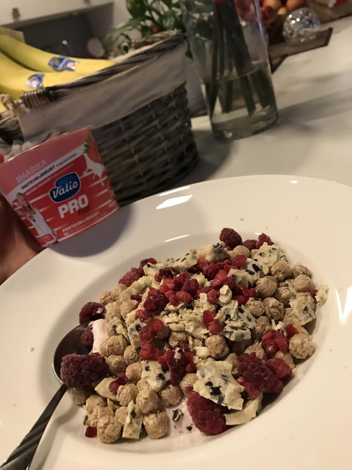 Võta välja, tambi kahvliga pudruks. Lisa üks muna, kaneeli ja prae. (mina panin terve muna ja 100 g munavalget)