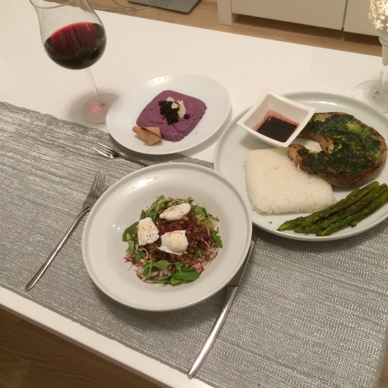 ” width=”20″ /> , sparglit, ricotta juustu, šampinjone ja vutimune. Andsin asjad naisele ja lahkusin köögist… Tulemus selline ….