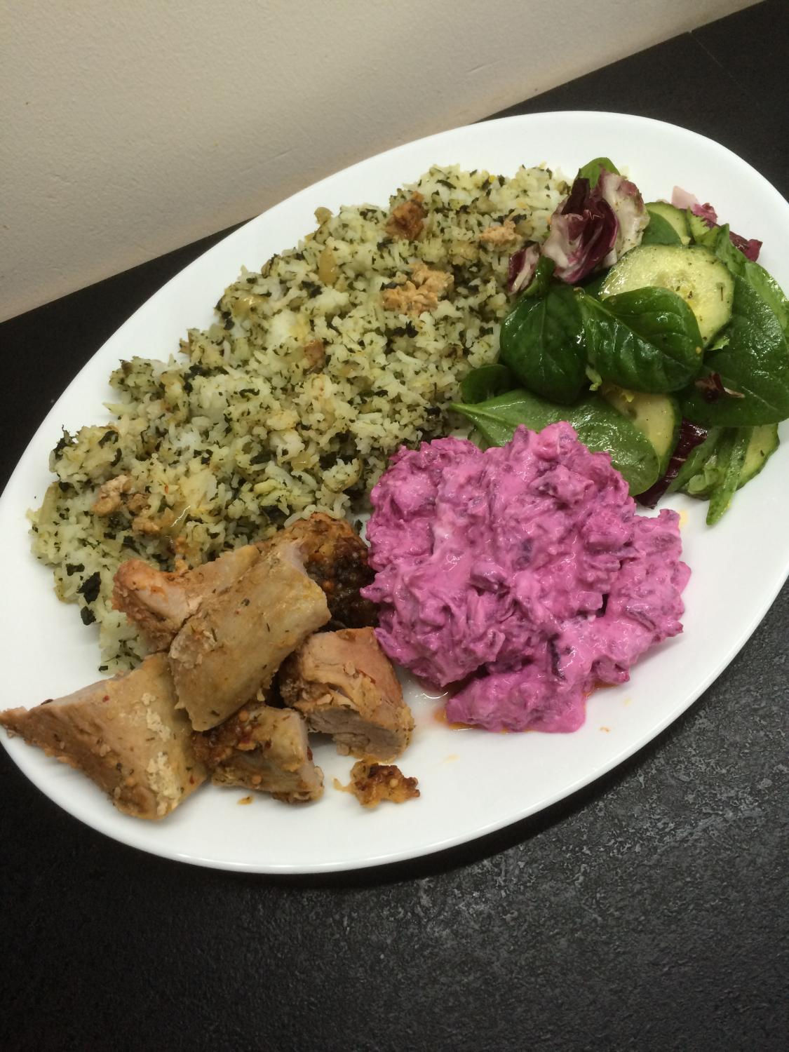 Kaubandusliku välimuseta jube hea söök kohvi kõrvale. Rakvere suitsusingike, keedumuna, sibul, peet, kodujuust, hapukoor, hapukurk. Külma variandina väga hea kaasa tassida. 527,4kcal, v 49,76, sv 18,64, r 27,88.