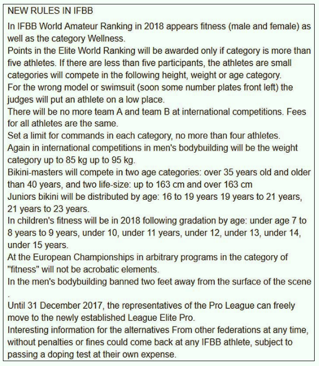 http://www.eastlabs.sk/europa/6130/ifbb-ohlasila-novinky-ktore-platia-pre-rok-2018