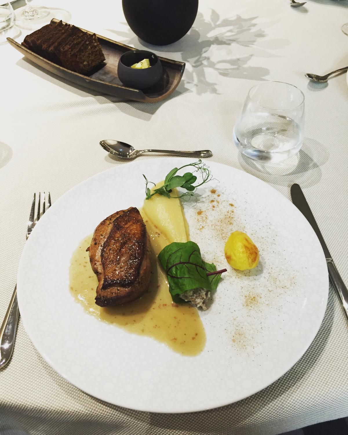 ” width=”20″ /> Õhtul oli Lydia Hotelli restoranis Hõlm – alustuseks kitsejuustuga salat ja pearoaks part