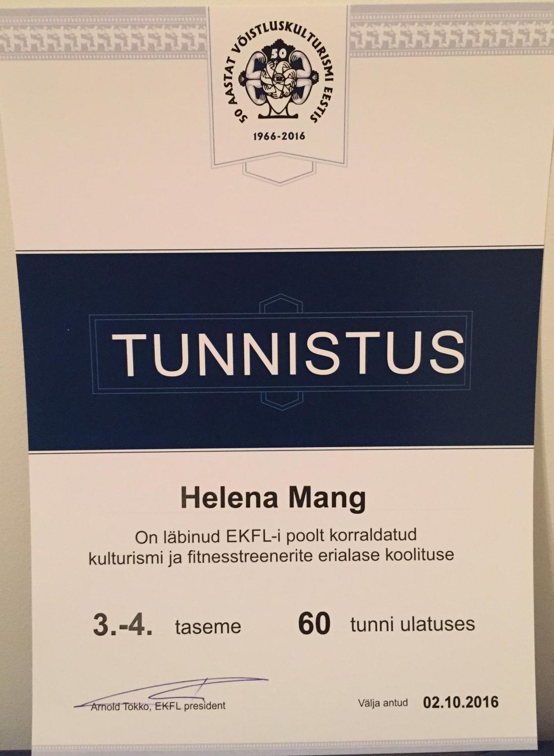 Reede-laupäev-pühapäev veetsin Kulturismi Liidu korraldataval Jõusaalitreenerite koolitusel ja eile õhtuks sain tunnistuse pihku. Nüüd on vaja läbida veel TÜ üldained ja minna kutseeksamile. Kahjuks antud koolitus kattub võistlustega ja seega saan eksamile minna alles kevadel. Mis siis ikka- kaua tehtud kaunikene