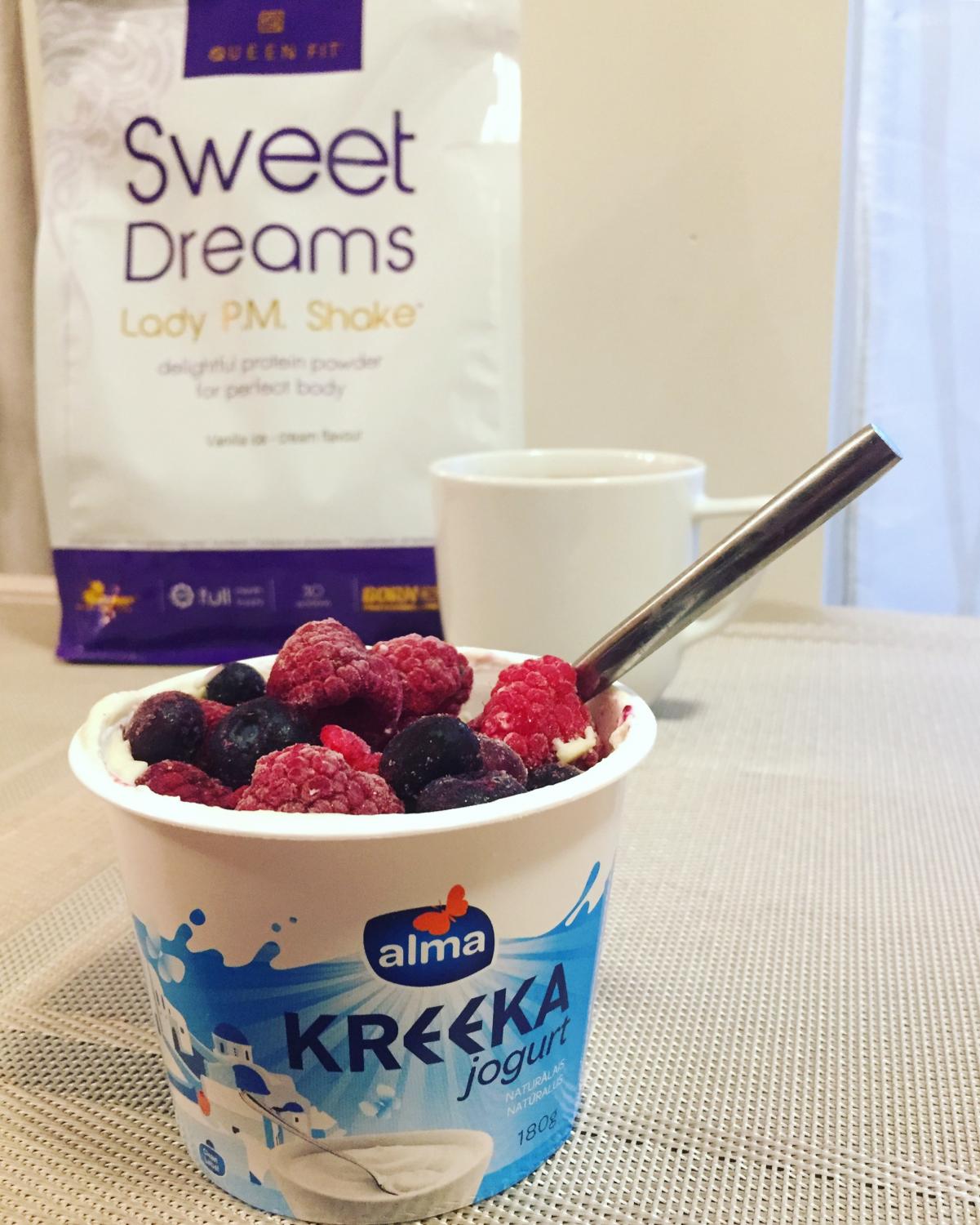 Õunakoogi pro-feel ja kreemiküpsise skyr (kookos oli ka väga hea!)