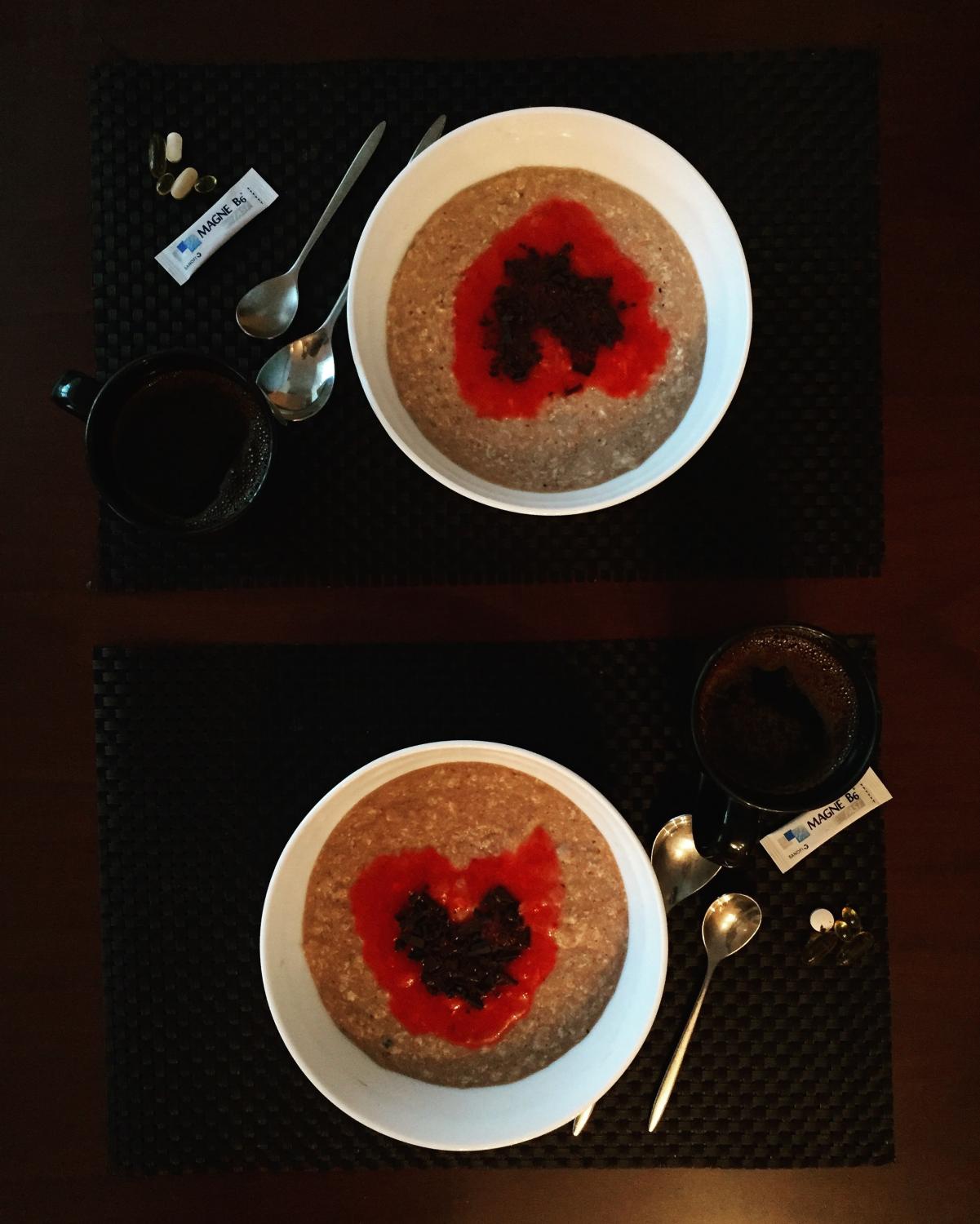 Hommikuks tegin südametega putru (blendertatud maasikad ja tume šokolaad)- parim “joonistamiseks” polnud aga asjaosalisele meeldis