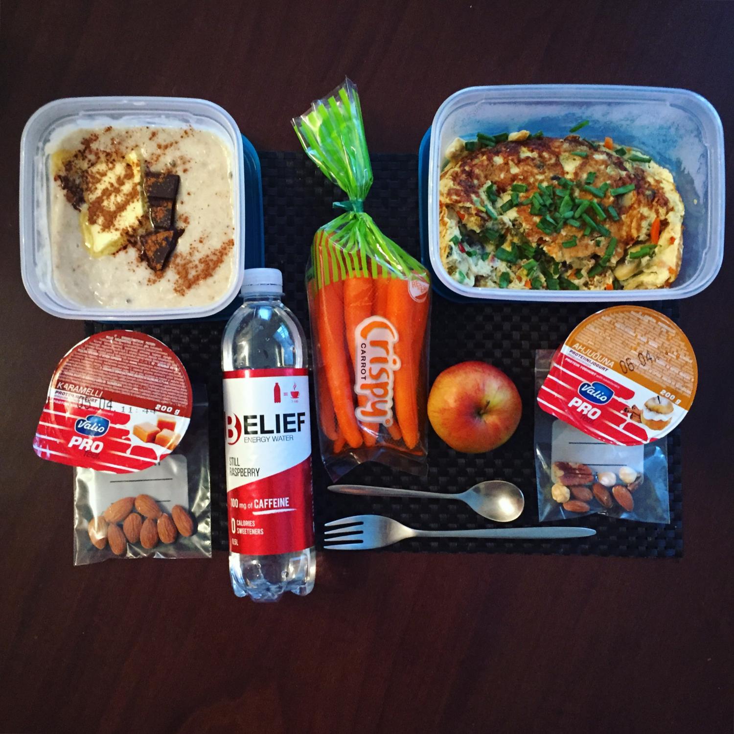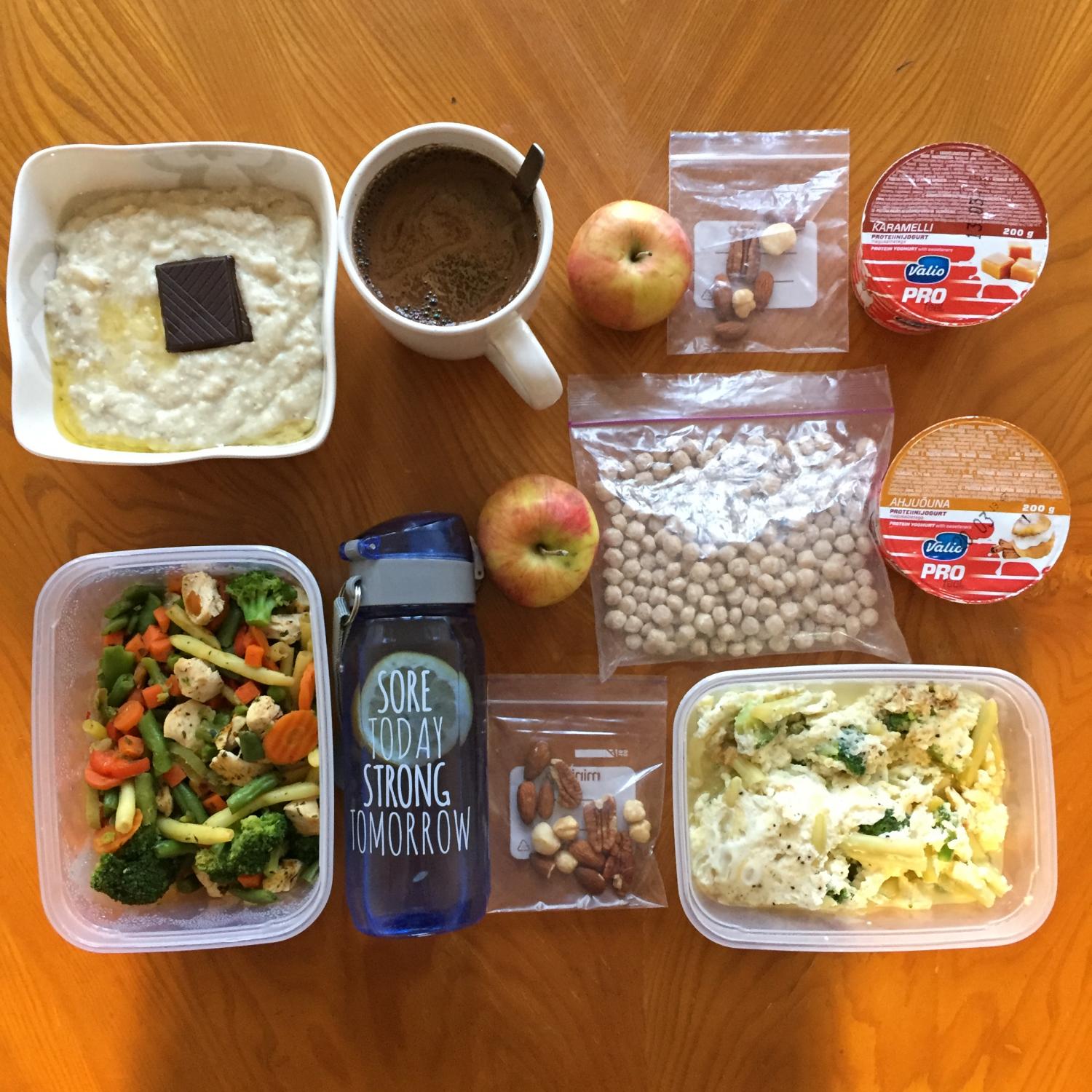 Kui plaan on paigas (selle koostamine tuleb juba suhteliselt “puusalt”) viskan kokku kiirelt keskmised 3 toidukorda: lõunasöök ja kaks vahepala, et oleks mida järgmisel hommikul kaasa võtta.