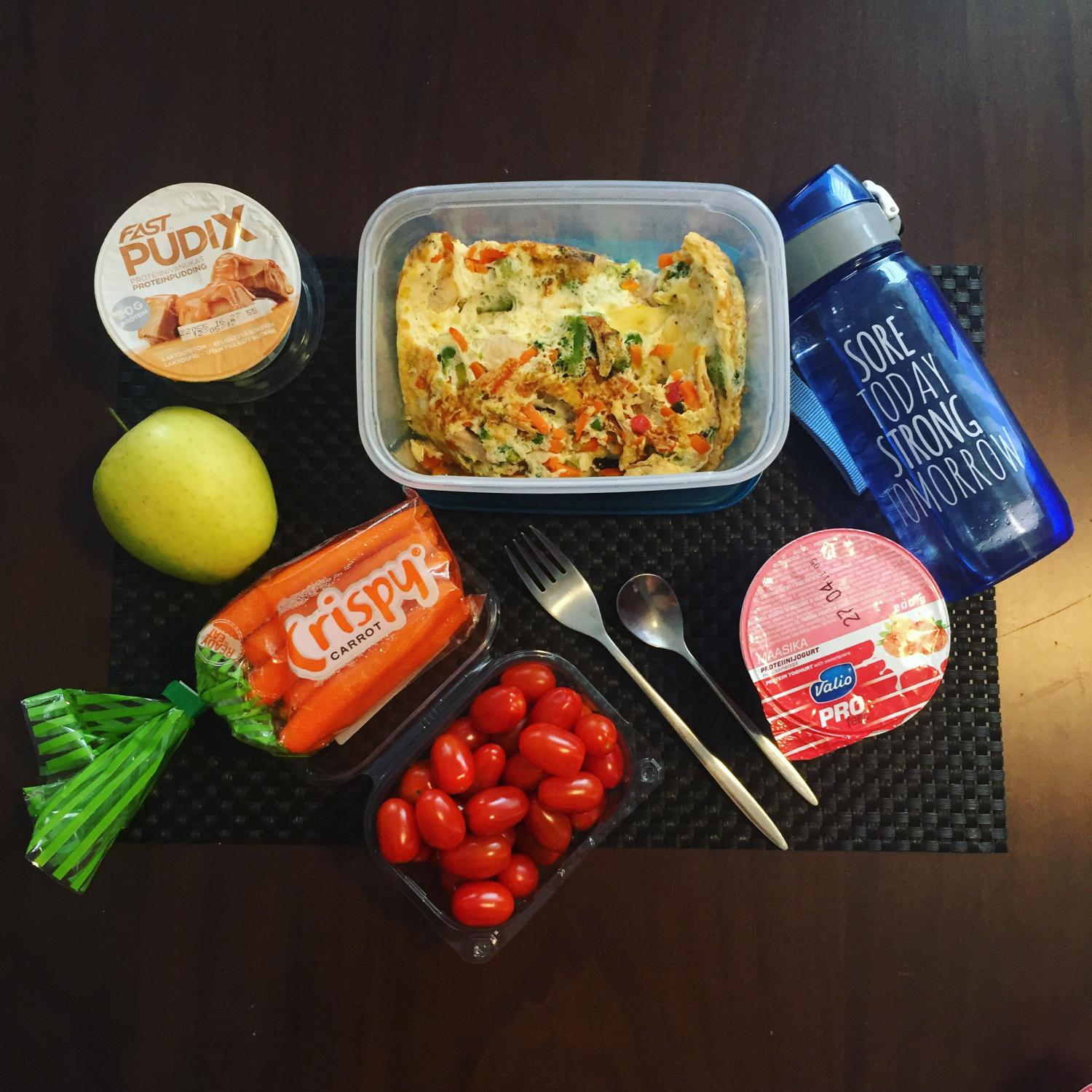 Selline on üks tavapärane kaasa pakitud päev- vesi, lõuna ja erinevad vahepealsed snäksid.