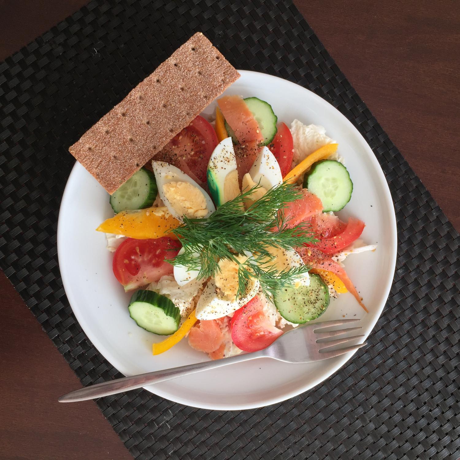 ” width=”20″ />Kiire bankett Salmes, sõin natukene lõhe pastat, ahju köögivilju kartuliga ja värsket salatit.