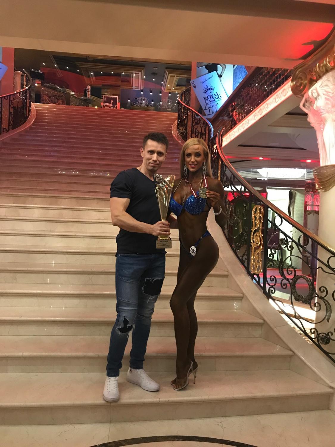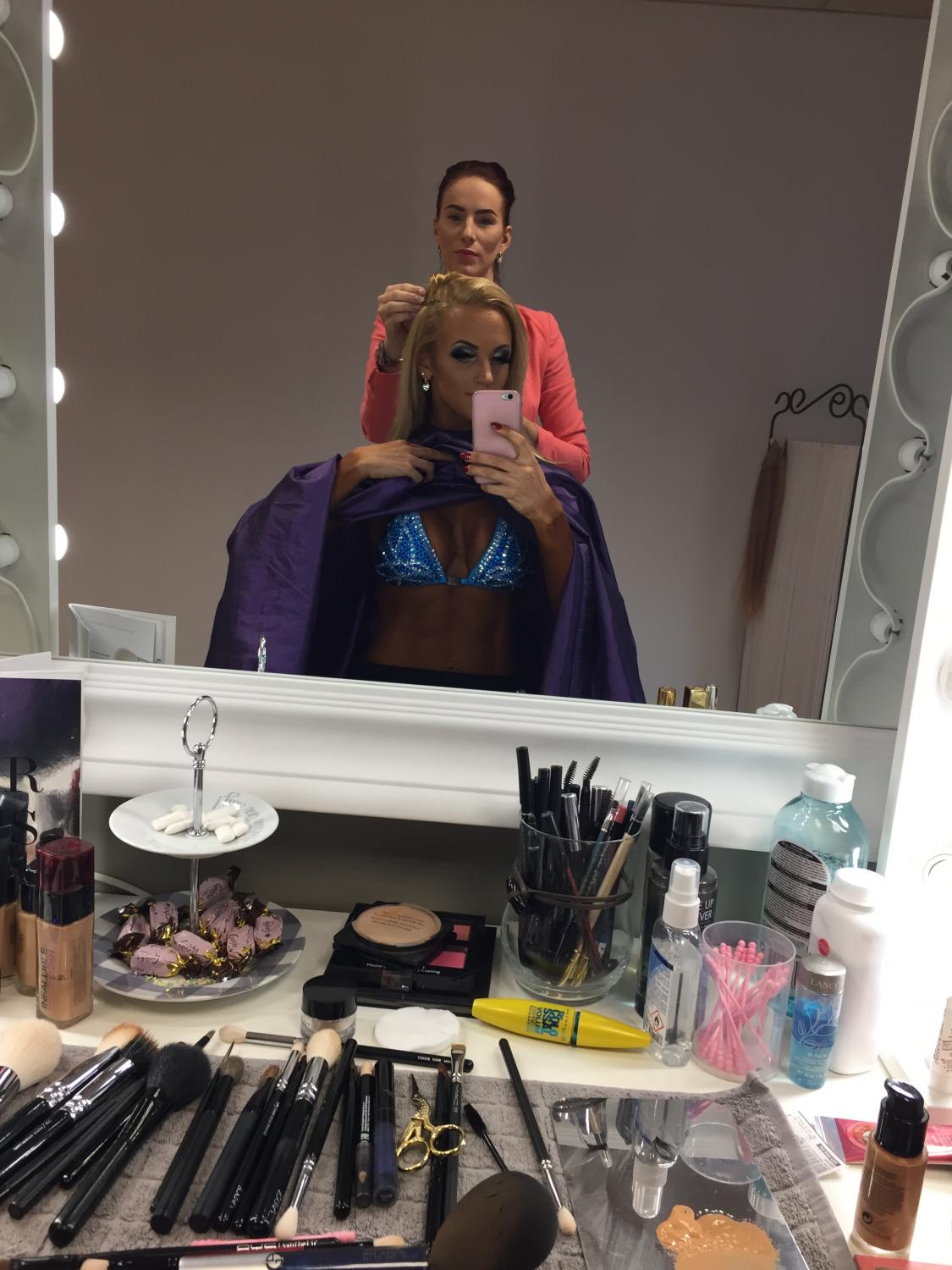 Võtsime hotellist late check-outi’ ja jõudsime võistluspaika natukene peale kell 3-e. Viisin asjad lavataha ja võtsin koha sisse rõdul- mõtlesin kohe et seal taga ma küll oma järge oodata ei viitsi (lava aeg oli hinnaguliselt 18.20 ja selleni umbes 3h aega) vaid vaatan parem rõdult võistlust. Selleks hetkeks oli mul grimm peal, bikiinid seljas, jumestus tehtud, juuksed sirgendatud- ehk põhimõtteliselt pane vaid kingad jalga ja mine lavale. Mingit suuremat “trenni tegemis” ma ka enne lava ei harrasta.