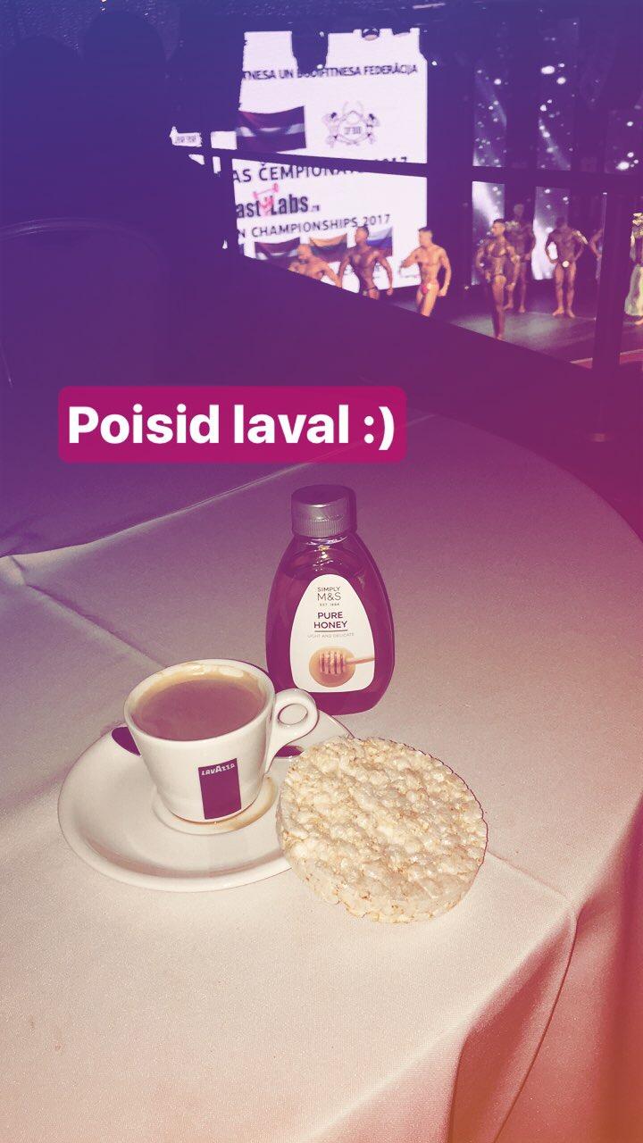 Peale laval käimist sõin ka ühe valgu batooni (Carb Killa, mis on mu lemmik)- see on kohvi kõrvale magustoiduks. Kõik suurem söömine jääb aga peale autasustamist- vaja ju veel pildi peal lameda kõhuga olla