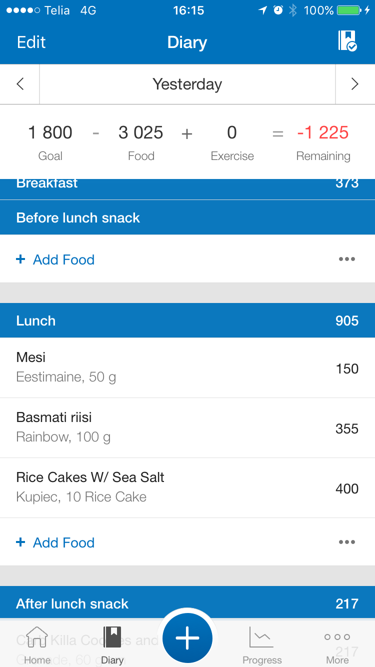 ” width=”20″ />Kaloraaz oli mul MyFitnessPalis juba ammu 1750 märgitud aga lasen siit-sealt ikka pidevalt üle (õunaviil, juurvilja natuke jne) ja nüüd mõtlesin et mis siis ikka ja märkisin sinna vana hea 1800cal tagasi (missest et ilmselt olen koguaeg u nii palju söönud).