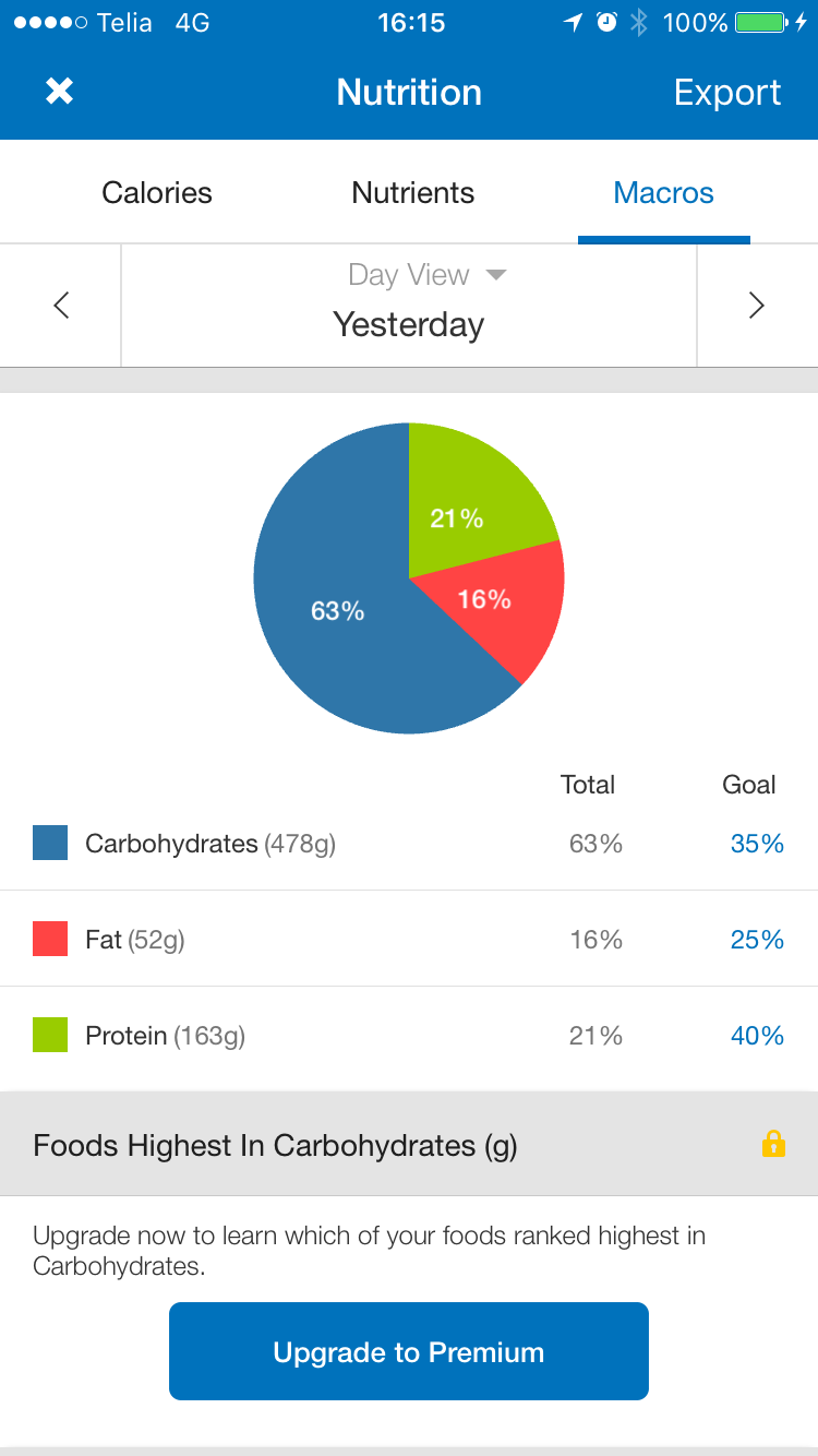 Trackisin seekord kogu võistluspäeva menüü MyFitnessPali sisse ka ja panen pildid juurde- siis saate aimu- valk ja rasv kokkuvõttes tavapärasel tasemel- süsivesikud laes. Tavapärase 1800 cal asemele siis umbes 3000 kalorit.