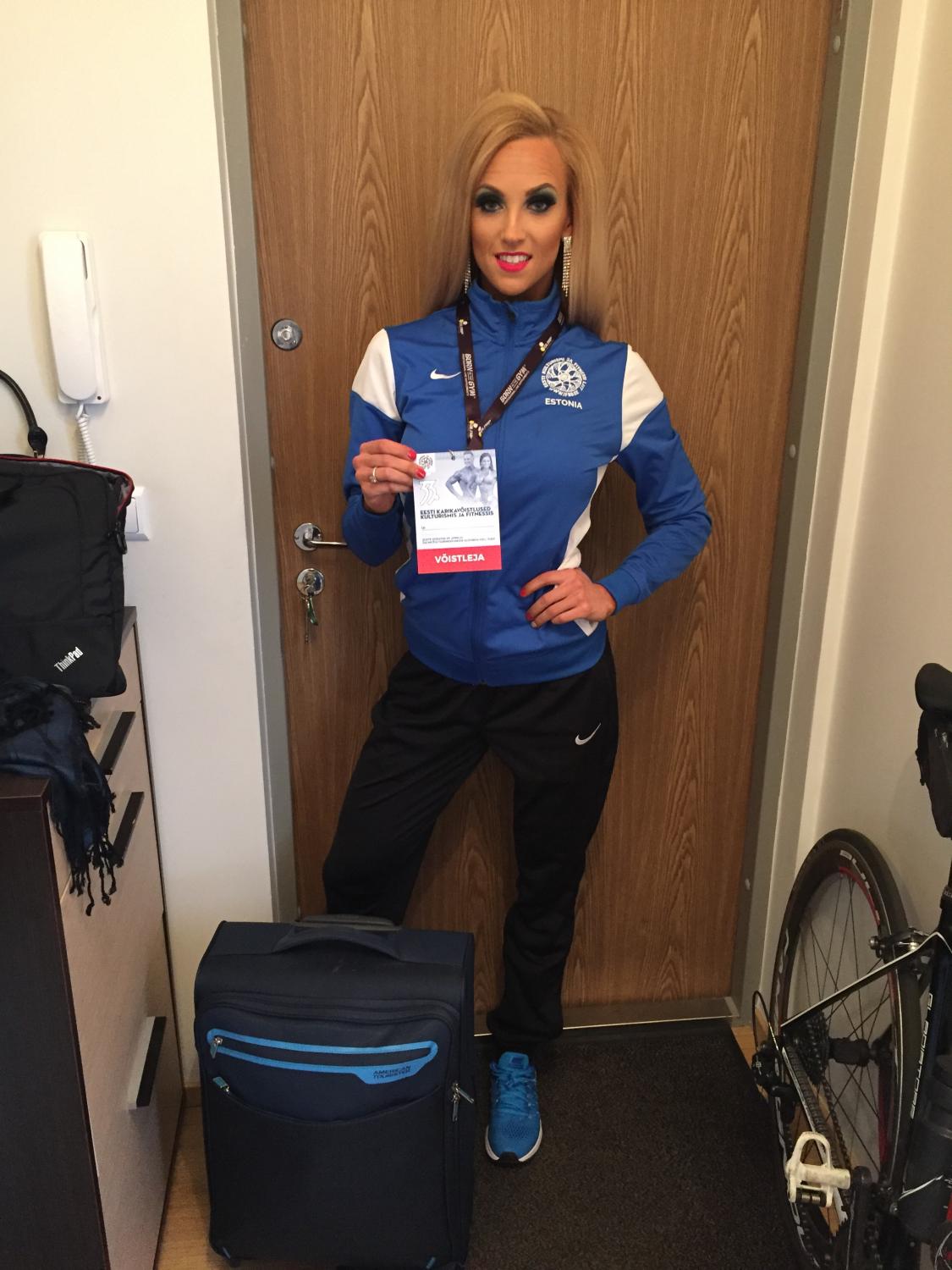 ” width=”20″ />Hommik algas eile väga rahulikult- kuna tegime 1. kihi grimmi juba eelmisel õhtul siis polnud kohe mökerdama vaja asuda. Pesin vaid ennast puhtaks, sõin korraliku pudru (100g kaerahelbeid, 1 banaan, mesi, tükk tumedat šokolaadi, pähklivõi, kaneel) ja läksin registreerima. Olin kohal täpselt kell 9.00 ja seal pidi natukene järjekorras seisma aga üldiselt läks suht kiirelt ja edukalt- mõõdeti pikkus, näitasin ette kingad ja bikiinid ja edasi liikusin juba ilusalongi. Õnneks mõõtmistega tekkis minu kategooriasse ikka võistlejaid juurde ja esialgse 4 osaleja asemel oli meid lõpuks siiski 7. Väga pisikeses kategoorias võistelda on kuidagi nukker ja võit ei ole ka nii magus