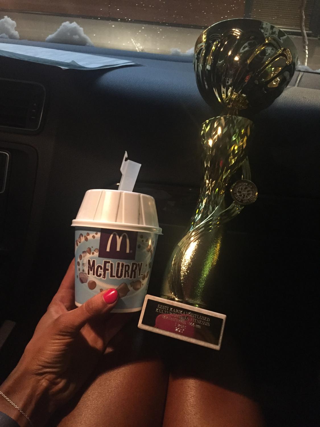 Koduteel sõin veel ära 2 õuna, Talleggi chicken snackid, 1 piimakohv, 1 valgubatoon ja…. McDonaldsi Daimi McFlurry (jäätis). See on minu ja Erki traditsioon- tähistame alati (häid!) tulemusi sellega. Õnneks on McDonaldsit igalpool, oled sa siis Eesti, Lätis, Soomes või Poolas.