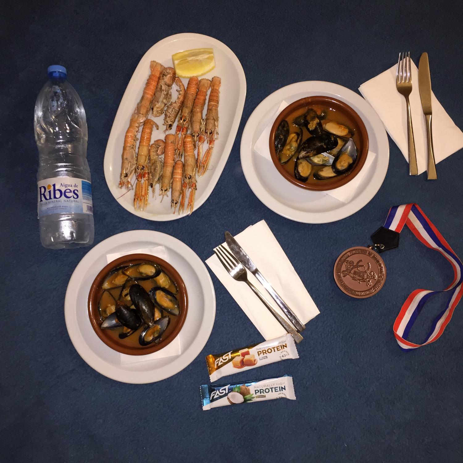 Olin plaaninud juba mitu päeva Danone külmutatud jogurti kohvikusse minna või pistaatsia gelatot süüa, lõpuks kui õue jõudsime oli kell saanud napilt 23 ja kõik sedasorti kohad kinni. Lõpetasime hoopis peale üürikest õueringi tagasi oma toas, room service tõi sinimerekarpe ja krevette, magustoiduks 2 Fast High Protein bari ja kohaliku rasvatut jogurtit värske ploomi tükkidega. Selline cheat siis