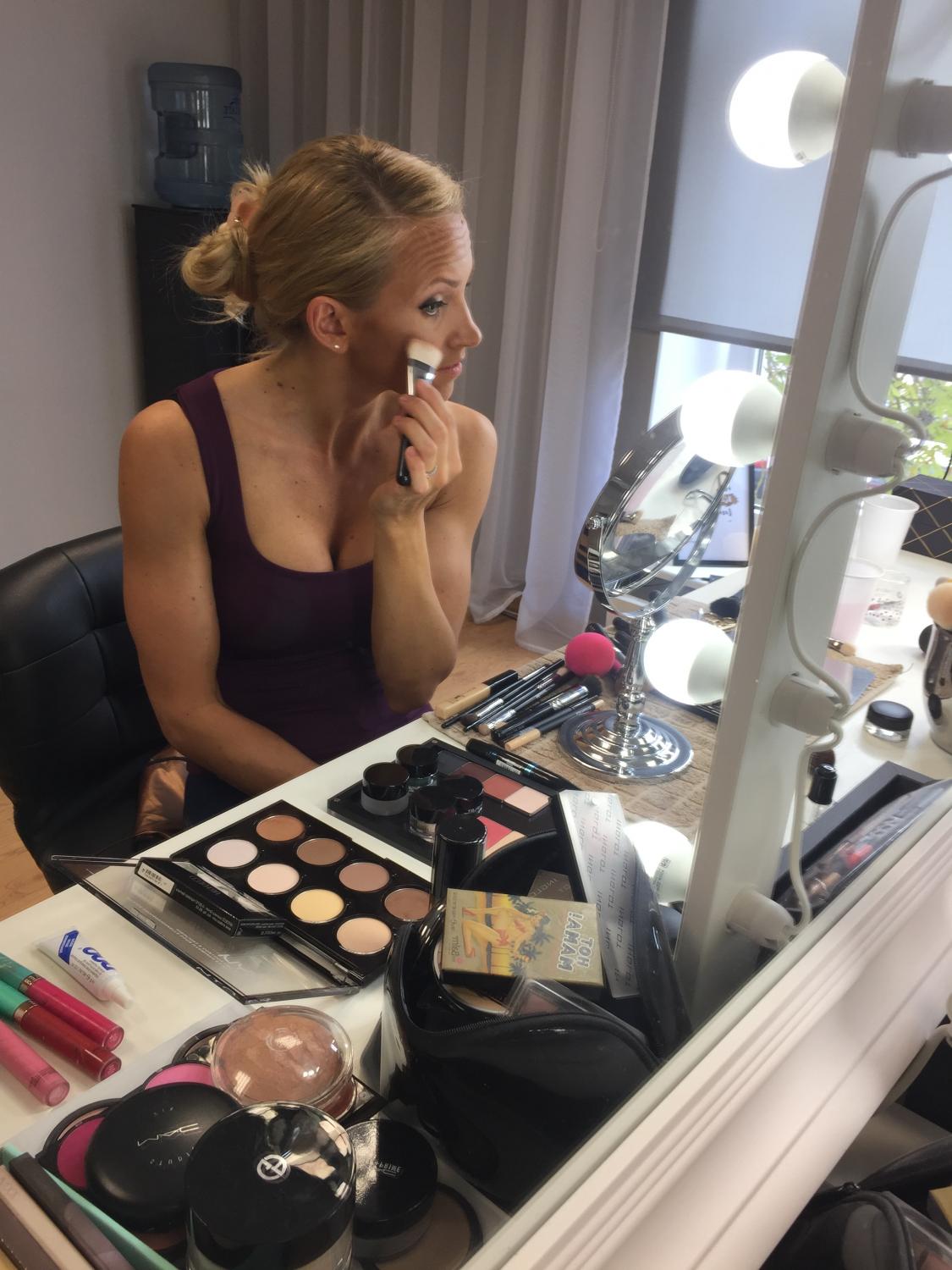 Kui see meigi jama kõrvale jätta siis lavanärvi kui sellist mulle sisse ei tulnudki. Hommik oli väga positiivne ja kui nägu sai parandatud ja rahunesin maha läks edasi ka väga sujuvalt. Pakkisin kohvri ja läksin võistluspaika, leidsin lavatagusel alal endale oma nurga ja seadsin sisse. Kohe tuli ka Eleri ja läksime alla mingisse riietusruumi grimmima. See oli mu esimene kogemus võistluspaigas grimmida. Oleme alati Erkiga seda enne hotellis privaatselt oma toas teinud.