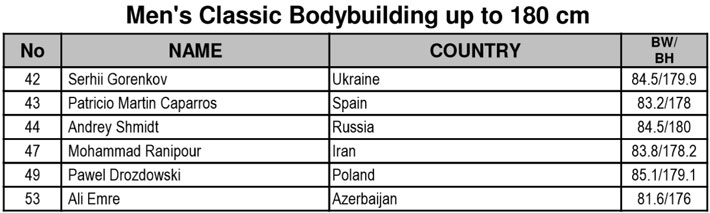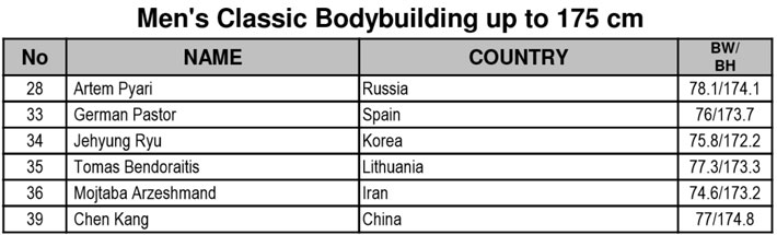 More photos available at http://www.eastlabs.sk/fotogaleria/2014-world-classic-bodybuilding-championships-alicante-spain/2014-world-classic-alicante-prejudging-175cm