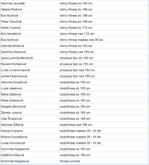 – Women Bodyfitness 158 cm, 163 cm, 168 cm, +168 cm