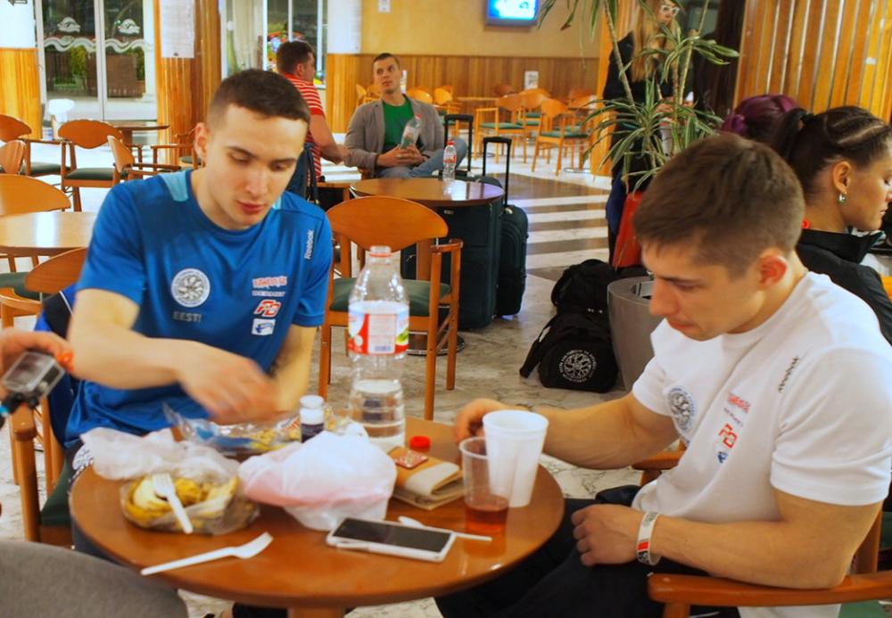 Kohale jõudsime kohaliku aja järgi kell 21.30. Mõned koondislastest olid juba kohal (kaasaarvatud Ergo kes oli terve päeva paberimajanduse ja rahadega jahmerdanud) ja siis tuli oodata registreerimist. Ott pigistas -85kg sisse ja kõik teised ka ilusasti kaalus sees. Toad saime enamus meist kätte ca 00.30. Teine osa meist jõudis hotelli just praegu (ehk 01.45)