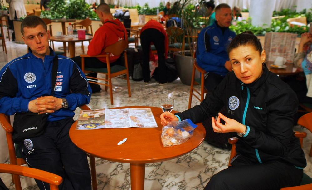 MemberIse nagu näha ei pääsenudki eile arvuti taha ,sest nagu Eleri juba kirjutas, siis reisimine võttis terve päeva ja kui päeva lõpuks oli endal kaal kukkunud hommikuse seisuga 3,2 kilo siis ega seal väga muu peale polnudki mõelda, lisaks jooksev koondisekaaslaste juhendamine informatsiooniga -nii vähe kui seda üldse päeva jooksul tuli. Suured kiidusõnad ütlen asepresident Hr. Metslale, kes oli jumal tänatud hommikul esimesena kohal ja ootas2,5 tundi et saaks sportlased ära registreeritud. Õhtul istusin ise samas sabas veel kuni südaööni, peale mind jäi veel 2 delegaati registreerima….))) Seega õhtul saabudes ei pidanud enam ootama nii kaua, et kaaluma – mõõtma jõuda. Leedukas Arvydas, kelle juures äsaj just võistlamas käisin, oli samas sabas 6 tundi….! Meie seisime Londoni passikontrollis Olegi ja Nataliaga (kellel Eesti passe pole samuti 1,5 tundi) , lendude vahe oli 3 tundi ja istuda saime mõnikümmend minutit, et otse järgmise lennu boardingule minna.