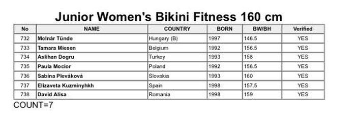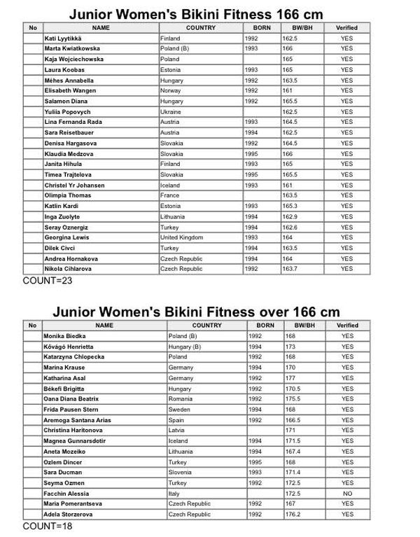 MemberDoes anyone have the participant-list for the minus 166 cm class of bikini fitness? And the junior bikini class as well