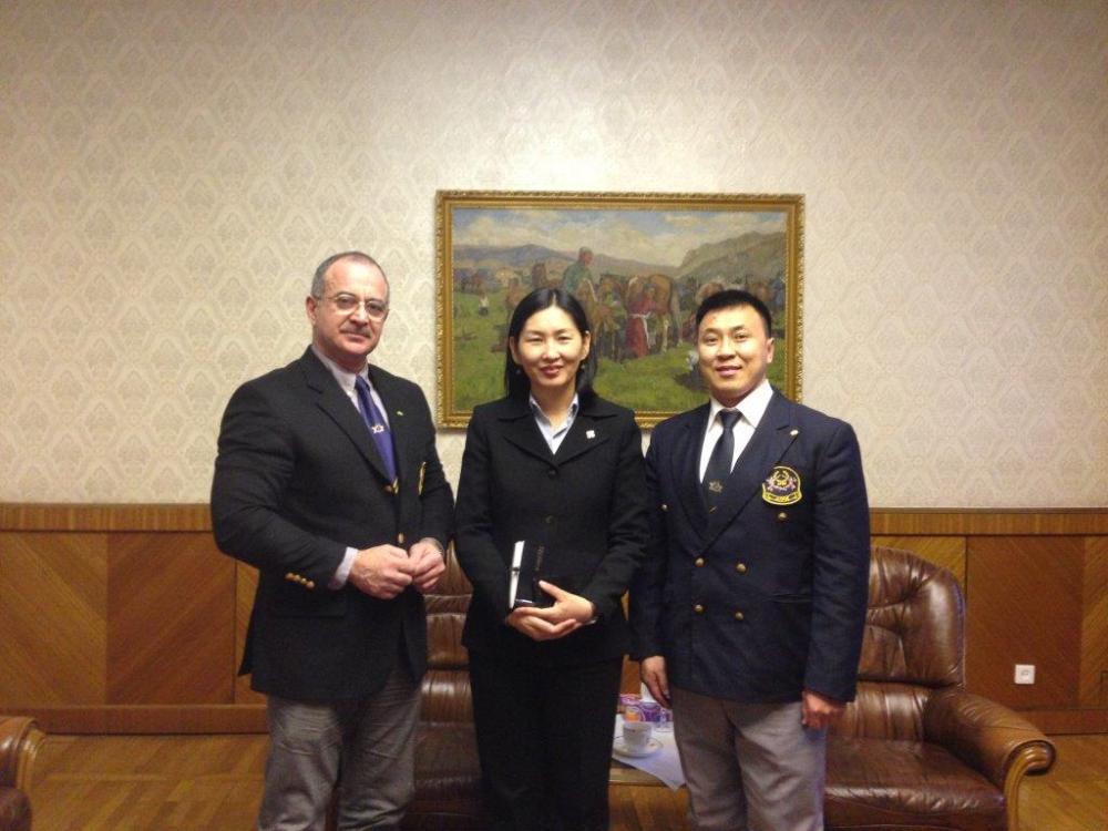 Meeting with D. Jargalsaikhan, Chairman, Department of Physical Culture and Sport in his office. During very warm and constructive talks Mr. Jargalsaikhan expressed his willingness to provide financial and organizational support on behalf of the sport authorities of Mongolia.