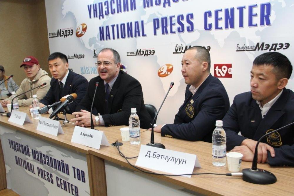 Press Conference at the Mongolian Sport TV channel, which was broadcasted live on Mongolian television.