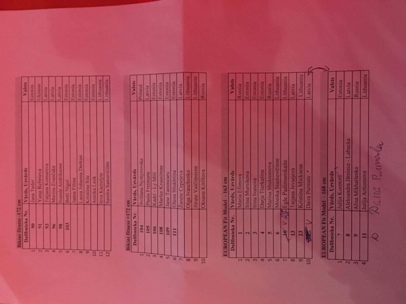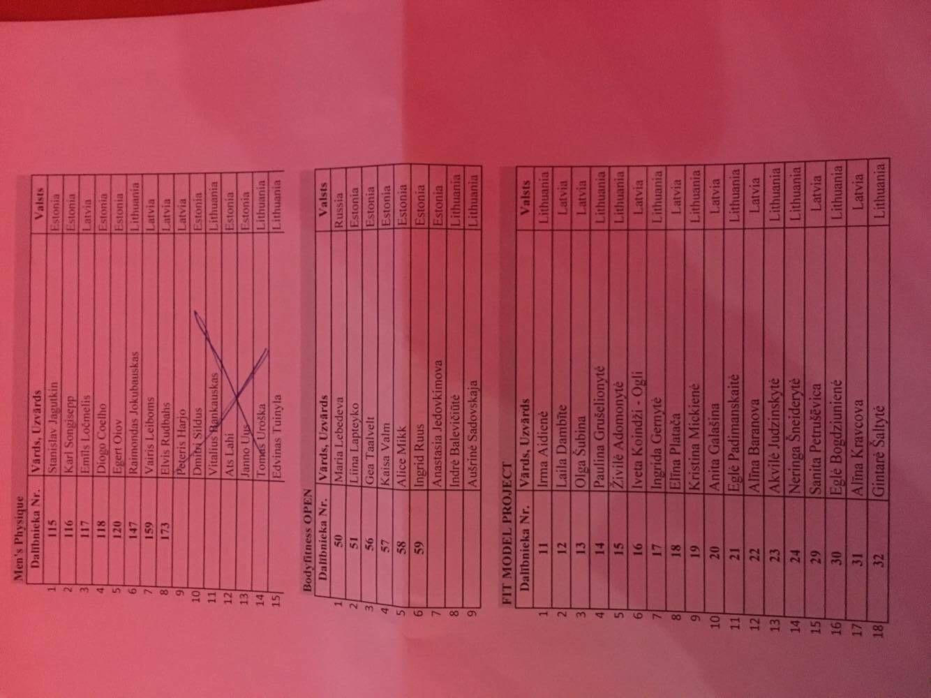IFBB European Fitmodel Cup. Eesti võistlejate nimekiri: