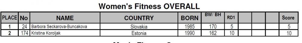 Veteranide ja juuniorite maadearvestuses Eesti kõrge 13 koht, edestades seejuures selliseid suurriike nagu Venemaa ja Ukraina ja tugevaid kulturismimaid nagu Tšehhi ja Leedu.