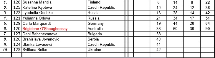 Brigidene Dolores O’Shaughnessy (6.) – Yulianna Orlova (4.) – Lyudmila Ghosko (3.)
