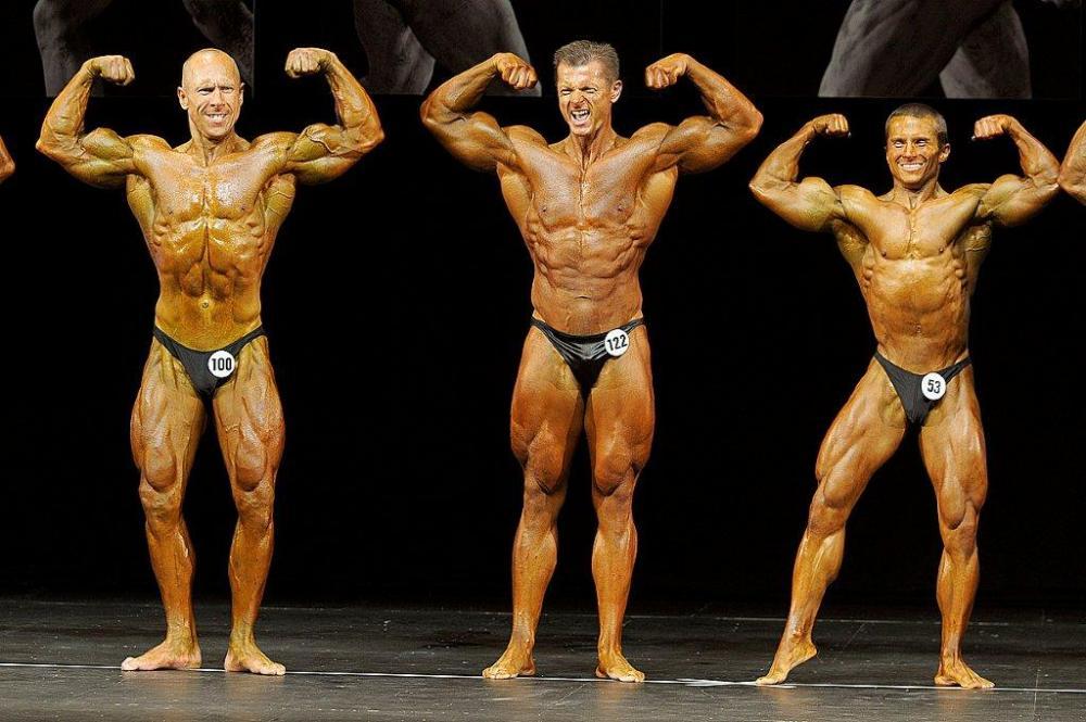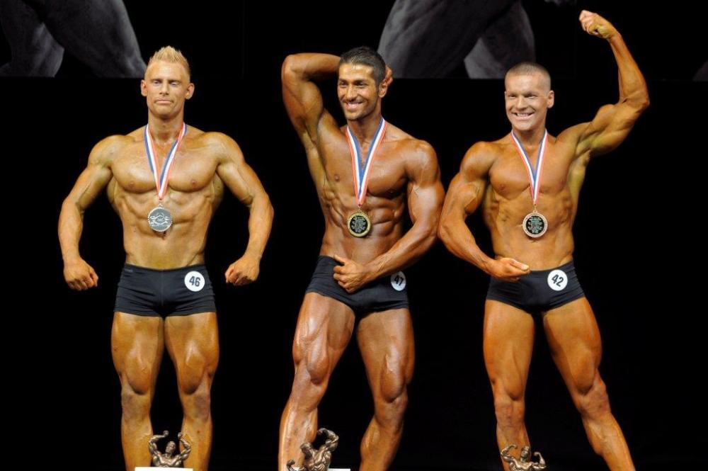 Bodybuilding open category winners (from L to R): Soran RASHID (2nd place); Ott KIIVIKAS (1st place); Oarabile BOTSHELO (3rd place).