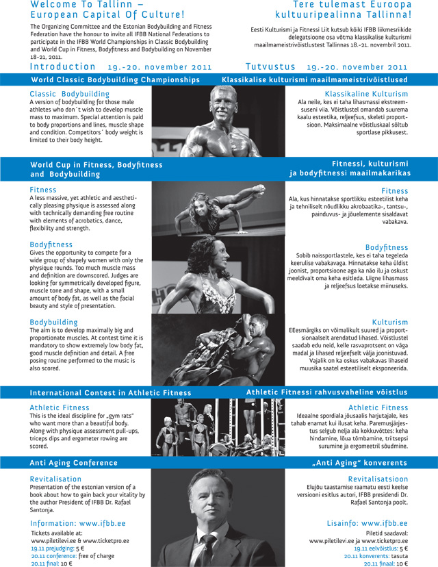 Member2011 WORLD CLASSIC BODYBUILDING CHAMPIONSHIPSTallin, Estonia will host the new edition of the fast growing new IFBB World Men Classic Bodybuilding Championships, November 18-21, 2011.